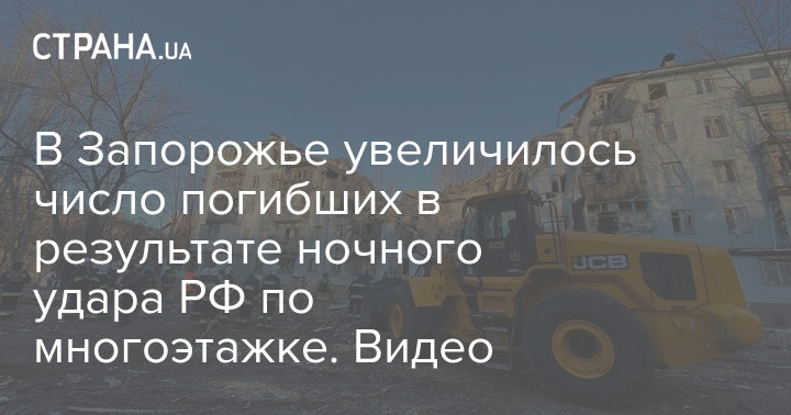 Глава Офиса президента Андрей Ермак сообщил, что число погибших в результате удара РФ по жилому дому в Запорожье увеличилось с двух до трех человек.