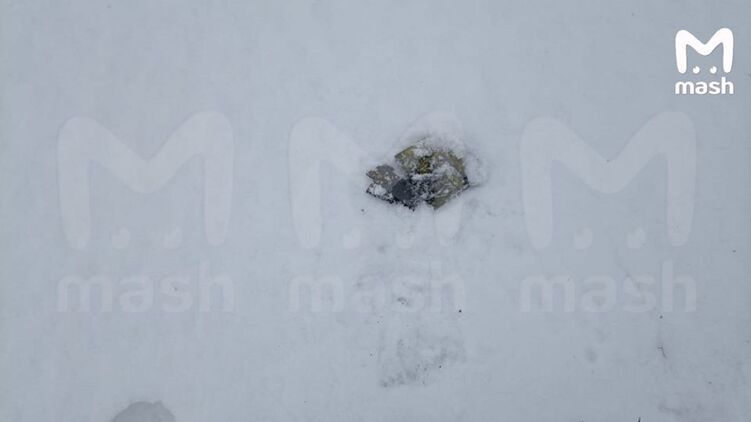 После взрыва металлические осколки разлетелись возле воронки. Фото: телеграм-канал/ Mash
