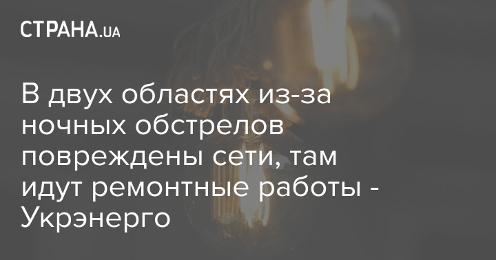 В двух областях из-за ночных обстрелов повреждены сети, там идут ремонтные работы - Укрэнерго