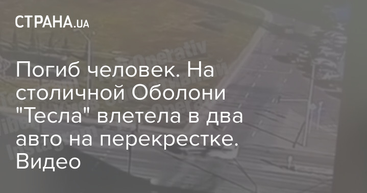Погиб человек. На столичной Оболони "Тесла" влетела в два авто на перекрестке. Видео