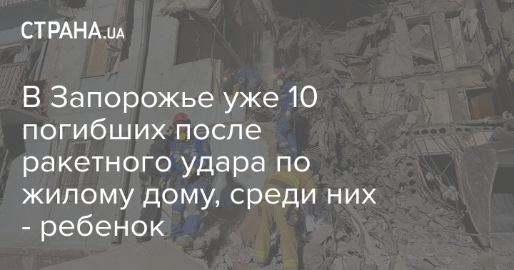 Число жертв после ракетного удара по жилому дому в Запорожье выросло до десяти человек, среди них - один ребенок.