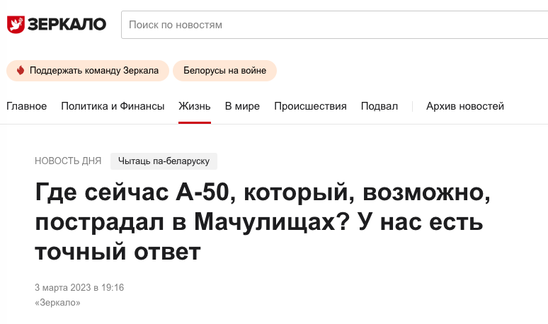Напомним, что по официальной российской версии, борт цел и несет службу в обычном режиме, в соответствии с планом "совершил облет государственной границы в группе и сопровождении других самолетов".