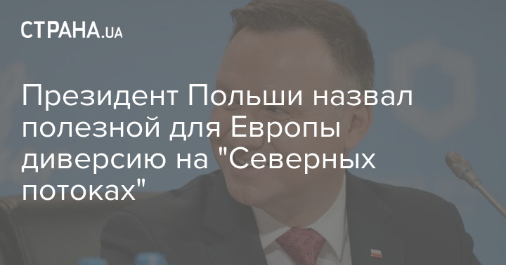 Президент Польши Анджей Дуда назвал уничтожение двух российских газопроводов "Северный поток" полезным для Европы.