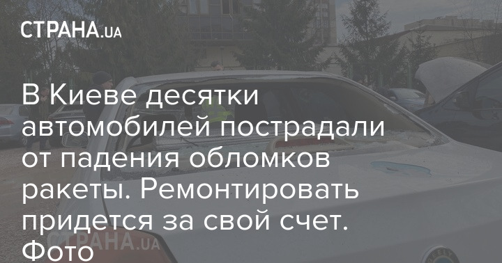 На месте падения обломков ракеты в Святошинском районе Киева корреспонденты "Страны" насчитали около 20 поврежденных автомобилей.