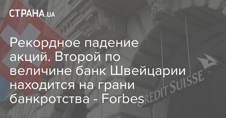 Рекордное падение акций. Второй по величине банк Швейцарии находится на грани банкротства - Forbes