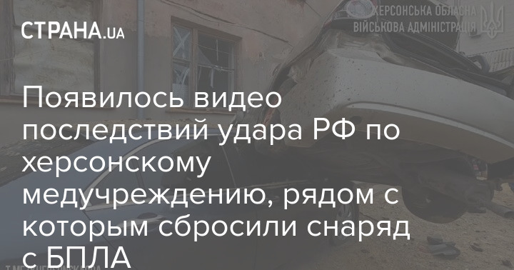 Появилось видео последствий удара РФ по херсонскому медучреждению, рядом с которым сбросили снаряд с БПЛА