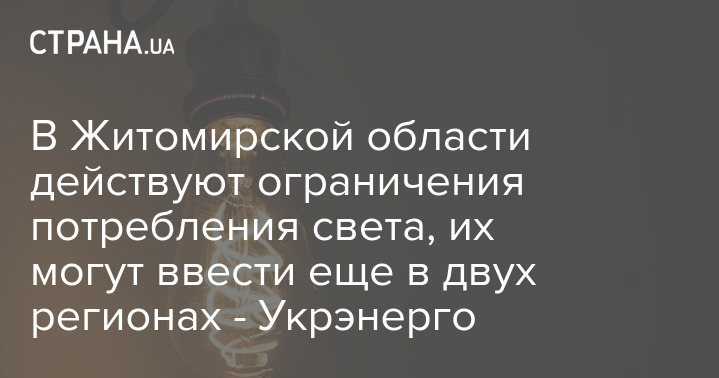 В Житомирской области действуют ограничения потребления света, их могут ввести еще в двух регионах - Укрэнерго