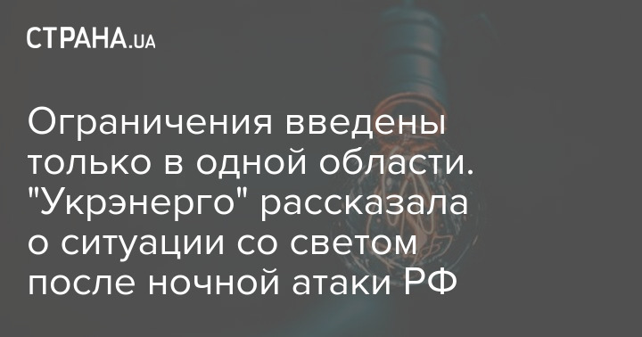 Ограничения введены только в одной области. "Укрэнерго" рассказала о ситуации со светом после ночной атаки РФ