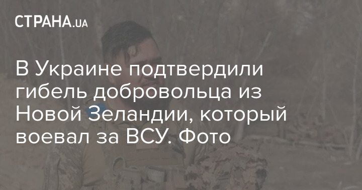 В Украине подтвердили гибель добровольца из Новой Зеландии, который воевал за ВСУ. Фото