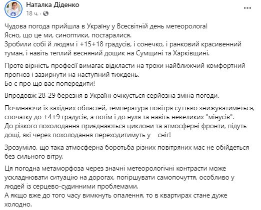 Прогноз погоды Укргидрометцентра на 24 марта 2023 года