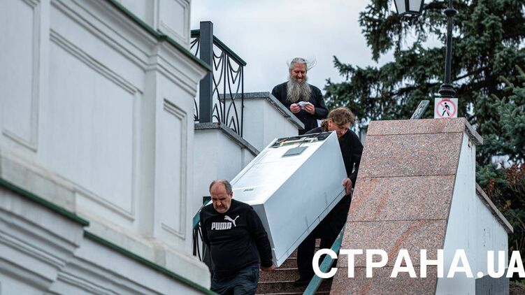 Монахи забирают вещи из лавры. Фото: Страна