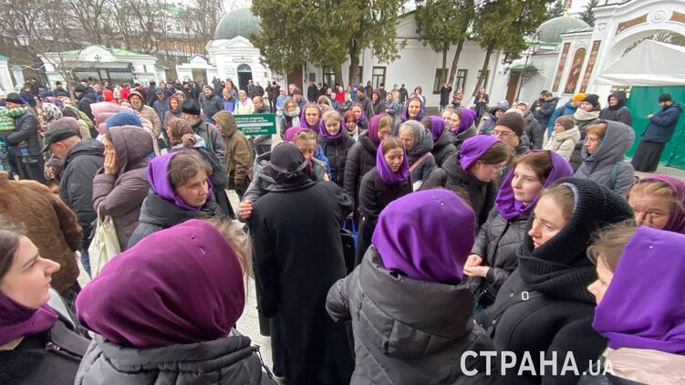 В Лавре собираются верующие УПЦ, они будут ожидать членов комиссии заповедника. Фото, видео