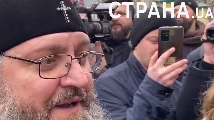 К верующим УПЦ, которые собрались около главного входа в Киево-Печерскую лавру, пришел Председатель Синодального информационно-просветительского отдела Украинской православной церкви Климент.