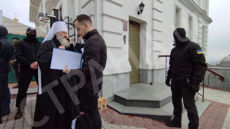Также публикуем фото и видео, как руководителю Лавры вручали подозрение.