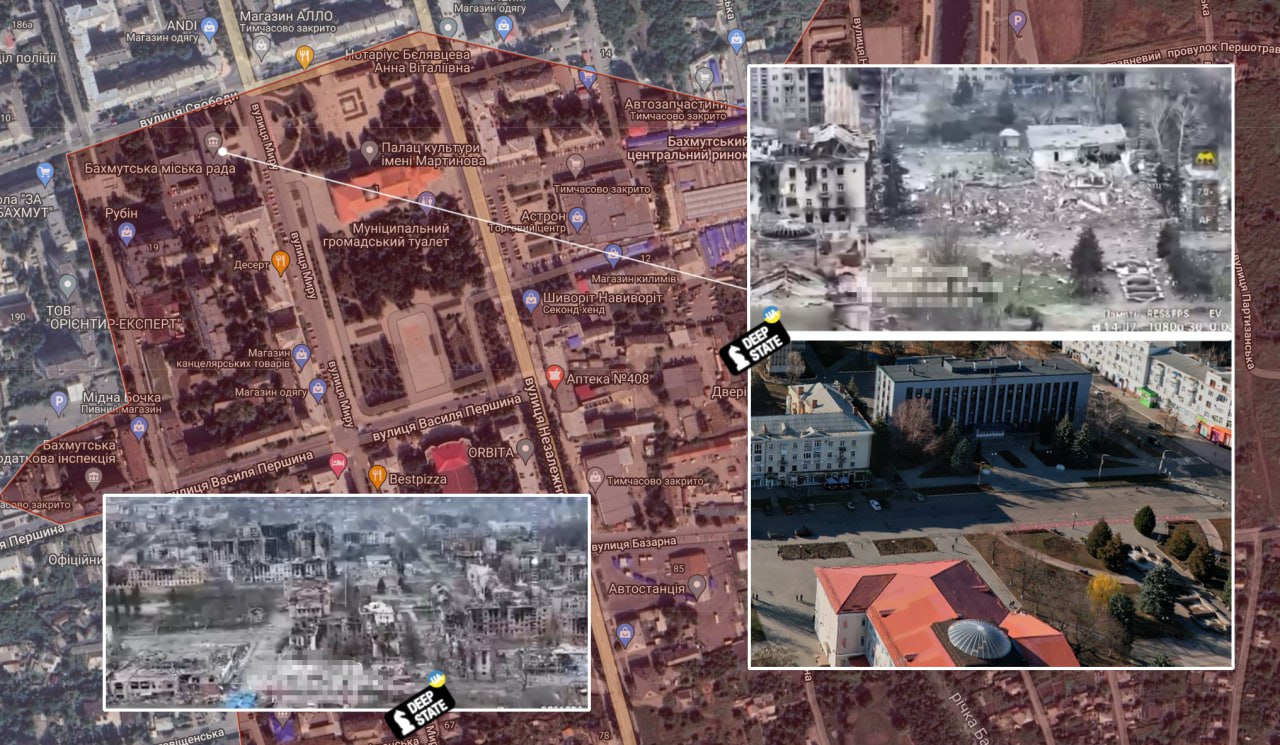 Как указывает популярный военный обозреватель Warmapper "подразделения российской ЧВК "Вагнер" захватили здание горсовета, расположенное в центре города, двигаясь на север вдоль берега реки Бахмутовка. Украинские силы, возможно, частично отошли из других районов в центре города, чтобы не быть отрезанными".