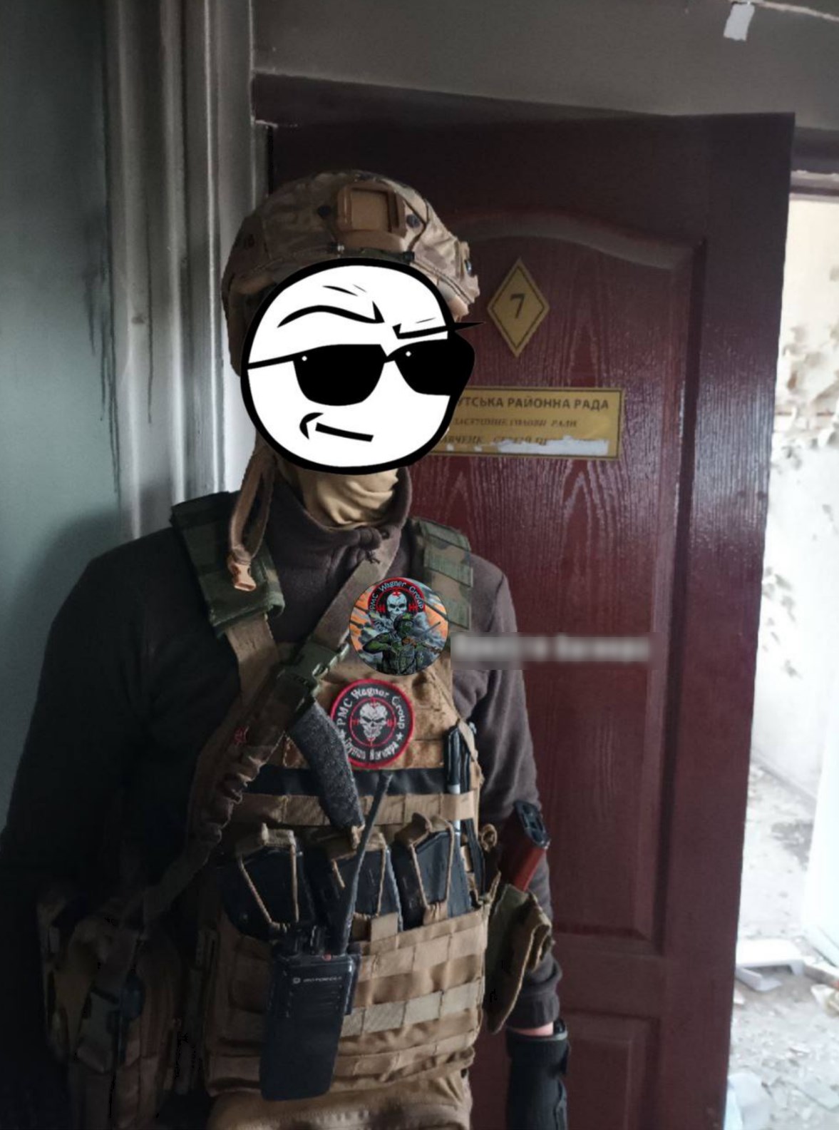 Также в телеграм-каналах "Вагнера" есть фото изнутри здания, где на дверях указано, что это Бахмутский районный совет. Здание РГА находится примерно в 650 метрах от городского совета (горисполкома).