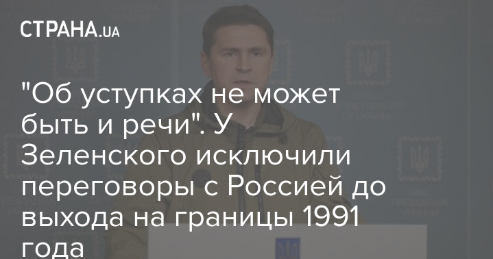 Советник главы Офиса президента Михаил Подоляк опроверг возможность переговоров с Россией до выхода Украины на границы 1991 года.