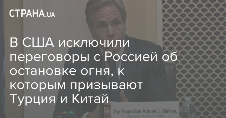 Госсекретарь США Энтони Блинкен исключил переговоры с Россией об остановке огня, к которым призывает ряд стран, включая Турцию и Китай.
