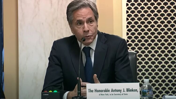 Госсекретарь США Энтони Блинкен, скриншот из видео слушаний в Комитете Сената США по международным отношениям