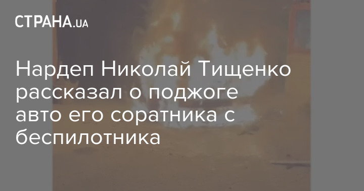 Народный депутат Николай Тищенко заявил, что машину его соратника сожгли с помощью дрона.