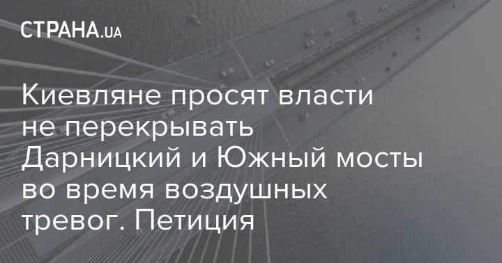 Жители Киева призывают власти столицы не перекрывать Дарницкий и Южный мосты во время воздушной тревоги.
