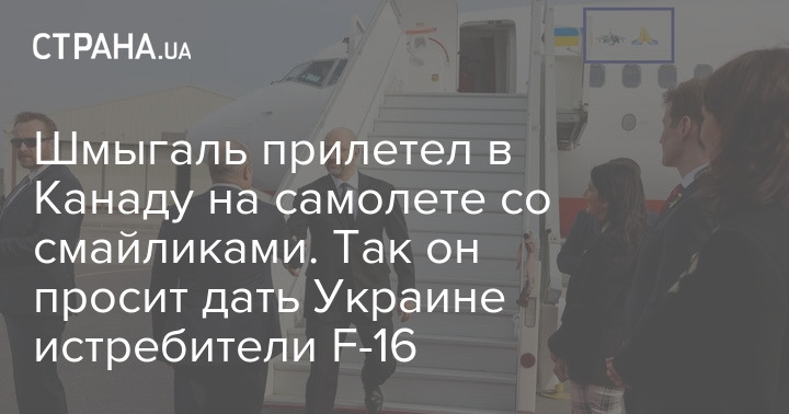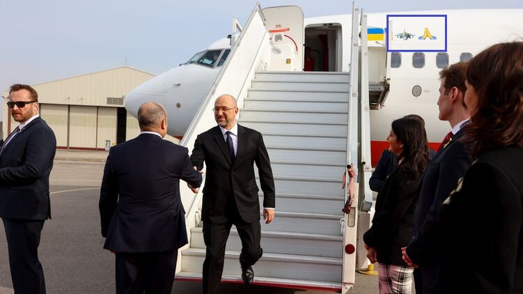 Премьер-министр Украины Денис Шмыгаль прилетел в Канаду на самолете со смайликами. Три эмодзи нарисованы на борту возле двери лайнера.