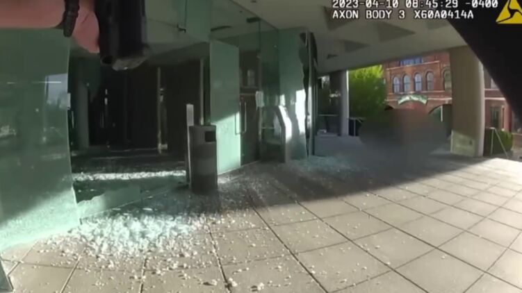 Полиция Луисвилля, штат Кентукки, опубликовала видео с нательной камеры полицейского, на котором запечатлена операция в отделении Old National Bank, где было совершено вооружённое нападение в понедельник, 10 апреля.