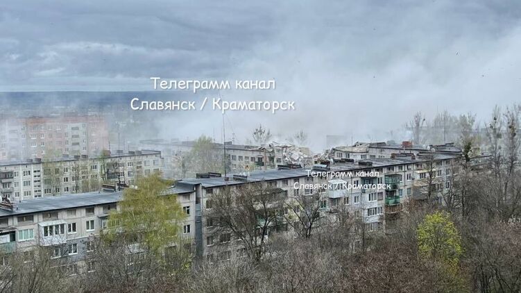 Как заявил Ермак, в Славянске сегодня раздалось не менее семи взрывов в районе школы №8. Прилёты пришлись в три пятиэтажных дома.