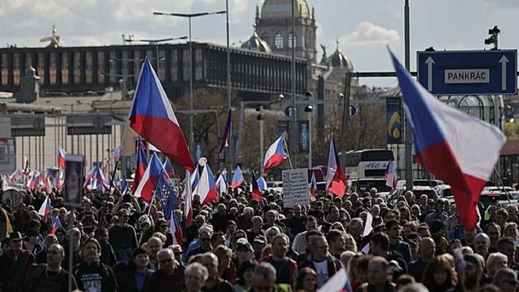 В Праге десятки тысяч чехов вышли на протест против войны и роста цен. Фото