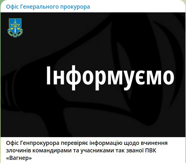 Между тем Офис Генпрокурора уже проверяет информацию о совершении преступлений командирами и участниками ЧВК "Вагнер".