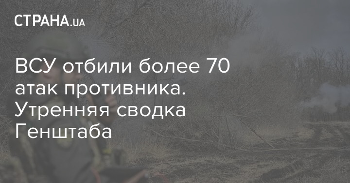 Генштаб ВСУ опубликовал утреннюю сводку с фронта. В течение суток было отражено более 70 атак противника.