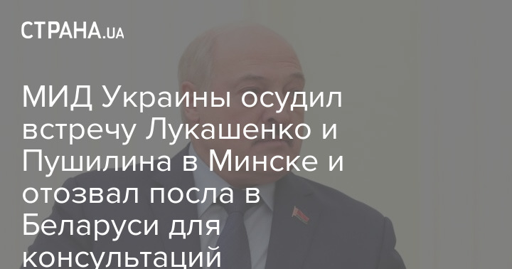 МИД Украины отреагировал на встречу президента Беларуси Александра Лукашенко и "главы ДНР" Дениса Пушилина в Минске. Ведомство отозвало посла в республике для консультаций.