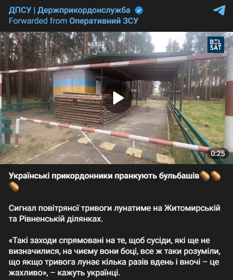 В сети появилось видео, как украинские пограничники троллят белорусских коллег. Теперь сигнал воздушной тревоги раздается и на другую сторону границы.