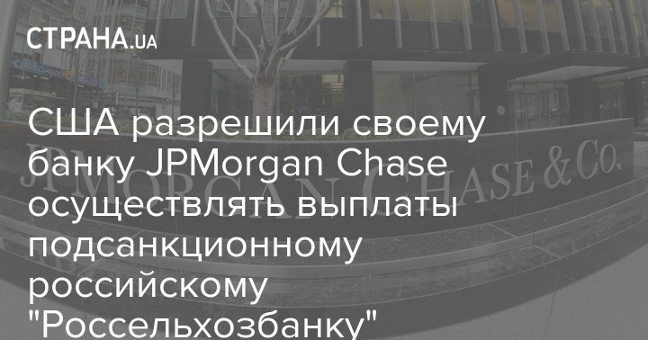 США разрешили своему банку JPMorgan Chase осуществлять выплаты подсанкционному российскому "Россельхозбанку"
