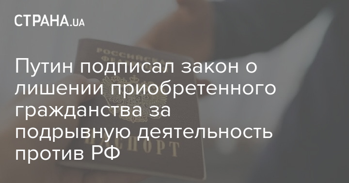 Путин подписал закон о лишении приобретенного гражданства за подрывную деятельность против РФ