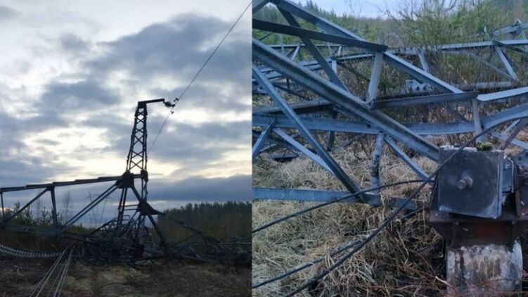 В Ленинградской области подорвали опору линии электропередач. Фото