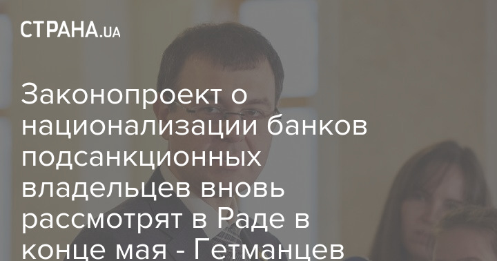 Глава комитета Верховной Рады по вопросам финансов, налоговой и таможенной политики Даниил Гетманцев сообщил, что проваленный Радой законопроект, который позволяет НБУ национализировать банки подсанкционных владельцев, вновь появится в зале парламента в конце мая.