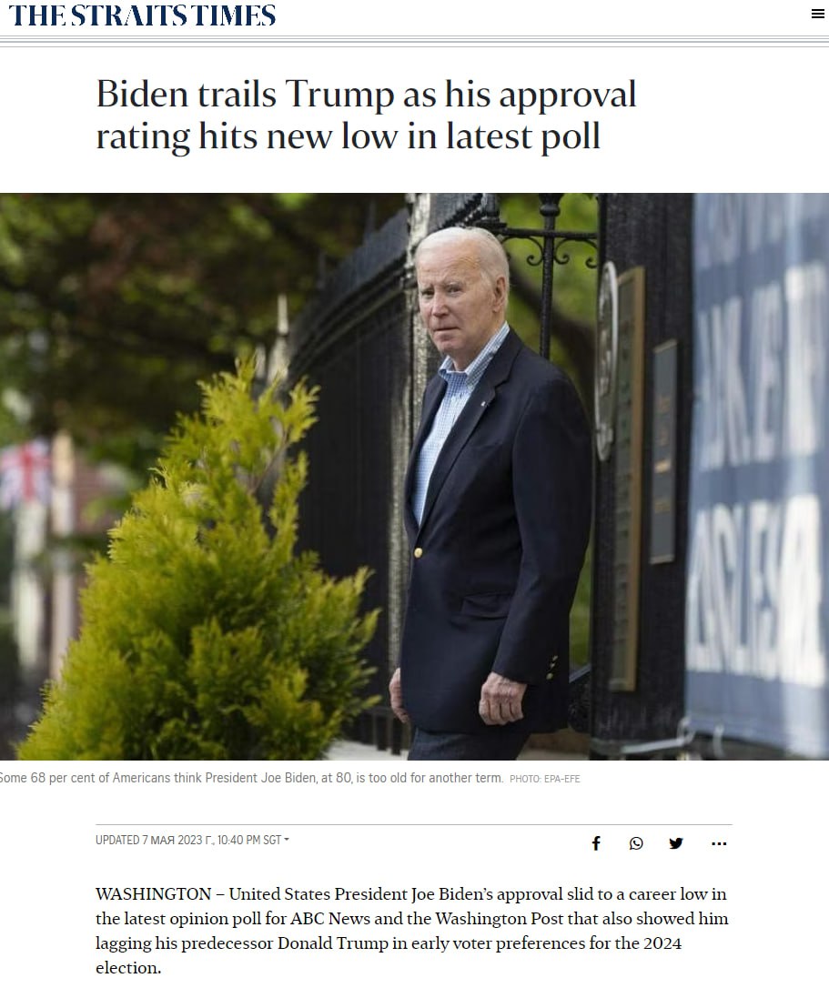 Напомним, что ранее мы писали, что рейтинг одобрения Байдена составляет 40% и он сильно рискует проиграть будущие президентские выборы в США.