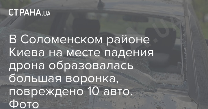 В Соломенском районе Киева на месте падения дрона образовалась большая воронка, повреждено 10 авто. Фото