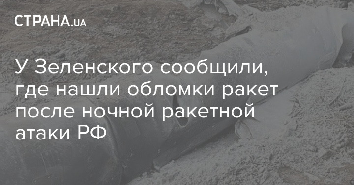 У Зеленского сообщили, где нашли обломки ракет после ночной ракетной атаки РФ