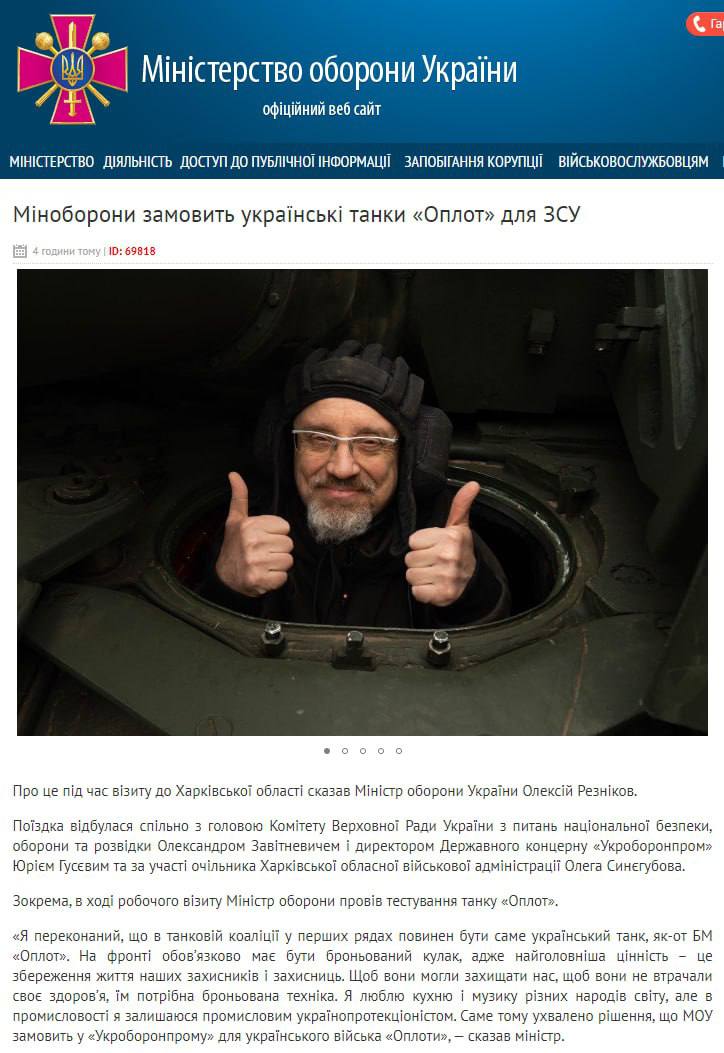 "На фронте обязательно должен быть бронированный кулак, ведь самая главная ценность – это сохранение жизни наших защитников и защитниц. Именно поэтому принято решение, что Минобороны закажет у Укроборонпрома для украинской армии "Оплоты", – сказал Резников.