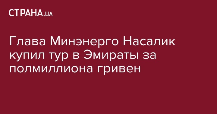 Глава Минэнерго Насалик купил тур в Эмираты за полмиллиона гривен