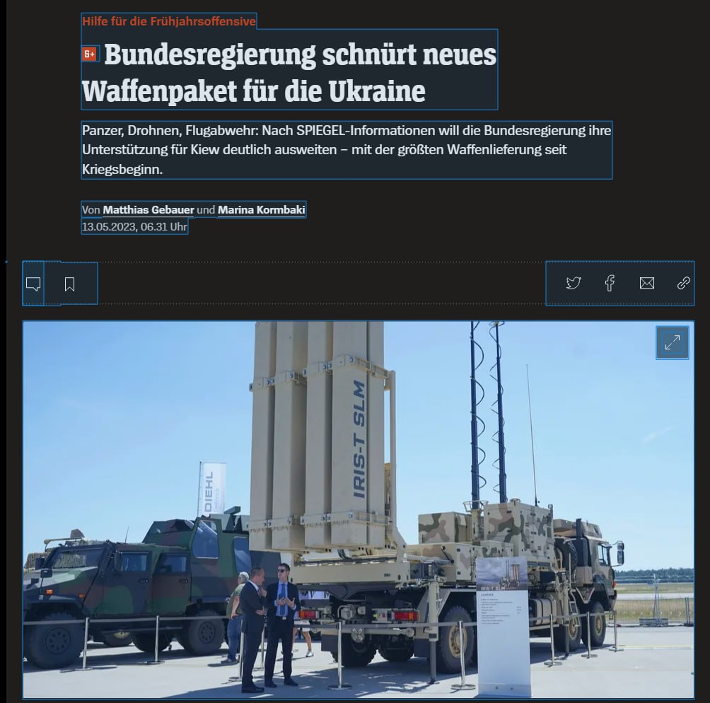 - 4 системы противовоздушной обороны IRIS-T-SLM,