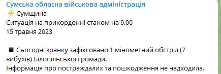 09.00 Утром был минометный обстрел приграничных районов Сумской области.