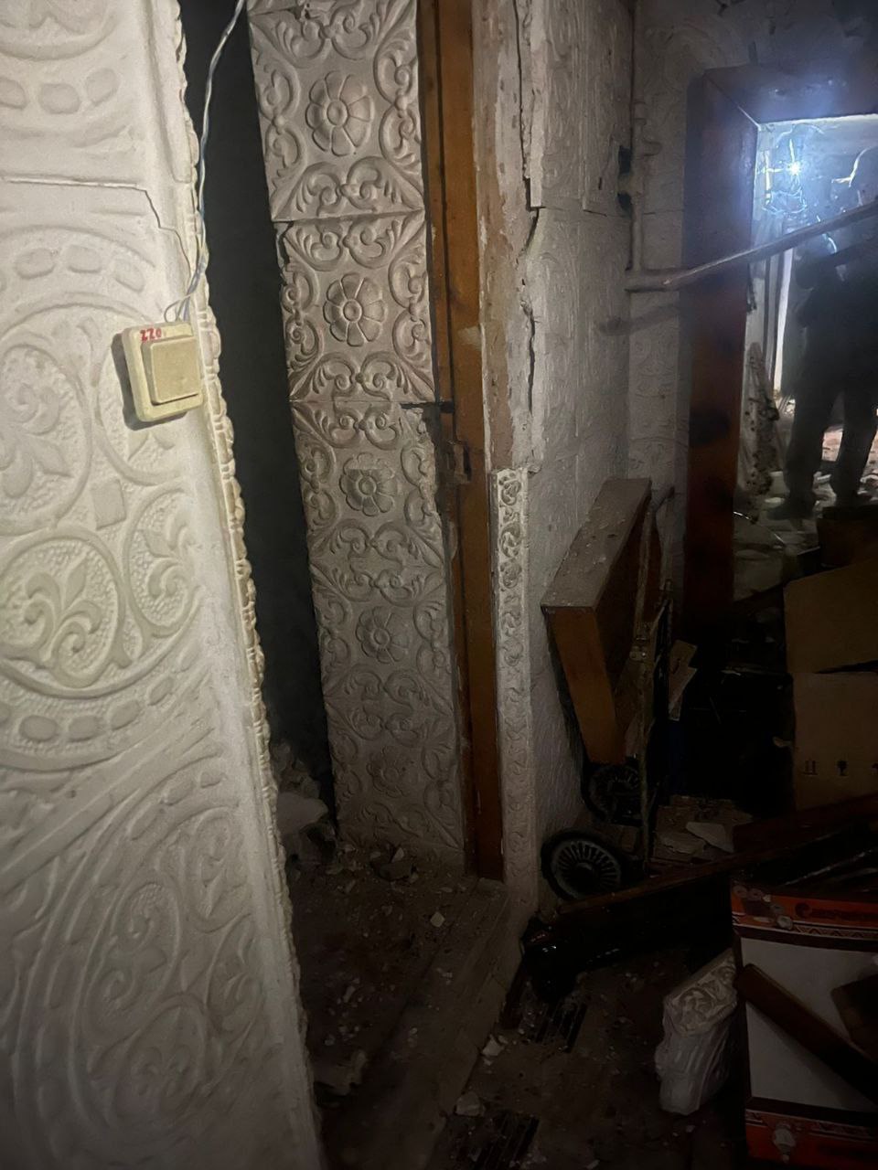 Также поврежден уличный газопровод и электросети.