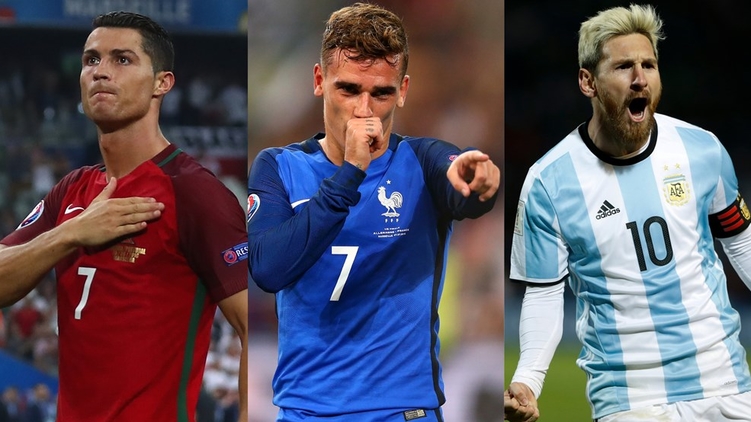 - 31-летний Роналду провел отличный год, в котором выиграл Кубок Чемпионов на клубном уровне, забив 16 мячей на пути к финалу за "Реал", а спустя шесть недель с тремя голами он привел свою сборную к триумфу на Евро-2016. Его называют главным претендентом на трофей.