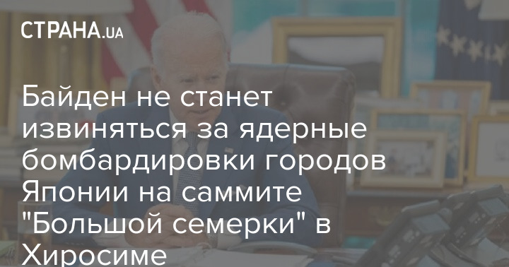 Президент США Джо Байден в японской Хиросиме, где послезавтра начнется саммит стран G7 ("Большой семерки"), не станет извиняться за ядерную бомбардировку города его страной в 1945 году.