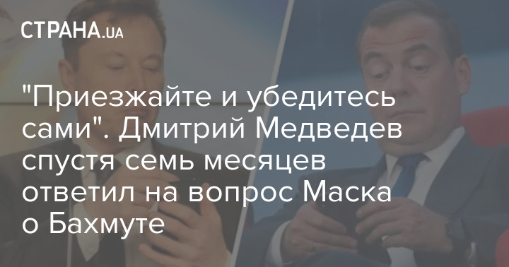 Тогда экс-президент РФ пригласил Маска в Москву. А сегодня он позвал его в Бахмут: "Вы спрашивали меня о Бахмуте... Приезжайте и убедитесь сами!"