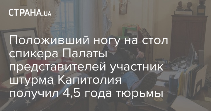 Положивший ногу на стол спикера Палаты представителей участник штурма Капитолия получил 4,5 года тюрьмы