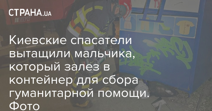 Киевские спасатели вытащили мальчика, который залез в контейнер для сбора гуманитарной помощи. Фото